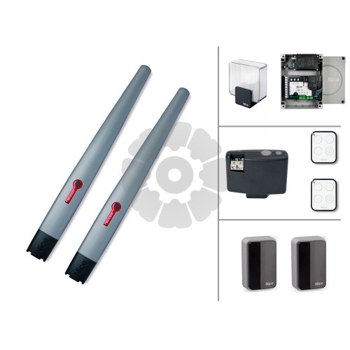 Состав комплекта2 привода ТО5024HS;блок управления МС824Н;приемник SMXI;фотоэлементы EPMB;сигнальная лампа ELDC;2 пульта Flo2R-S.